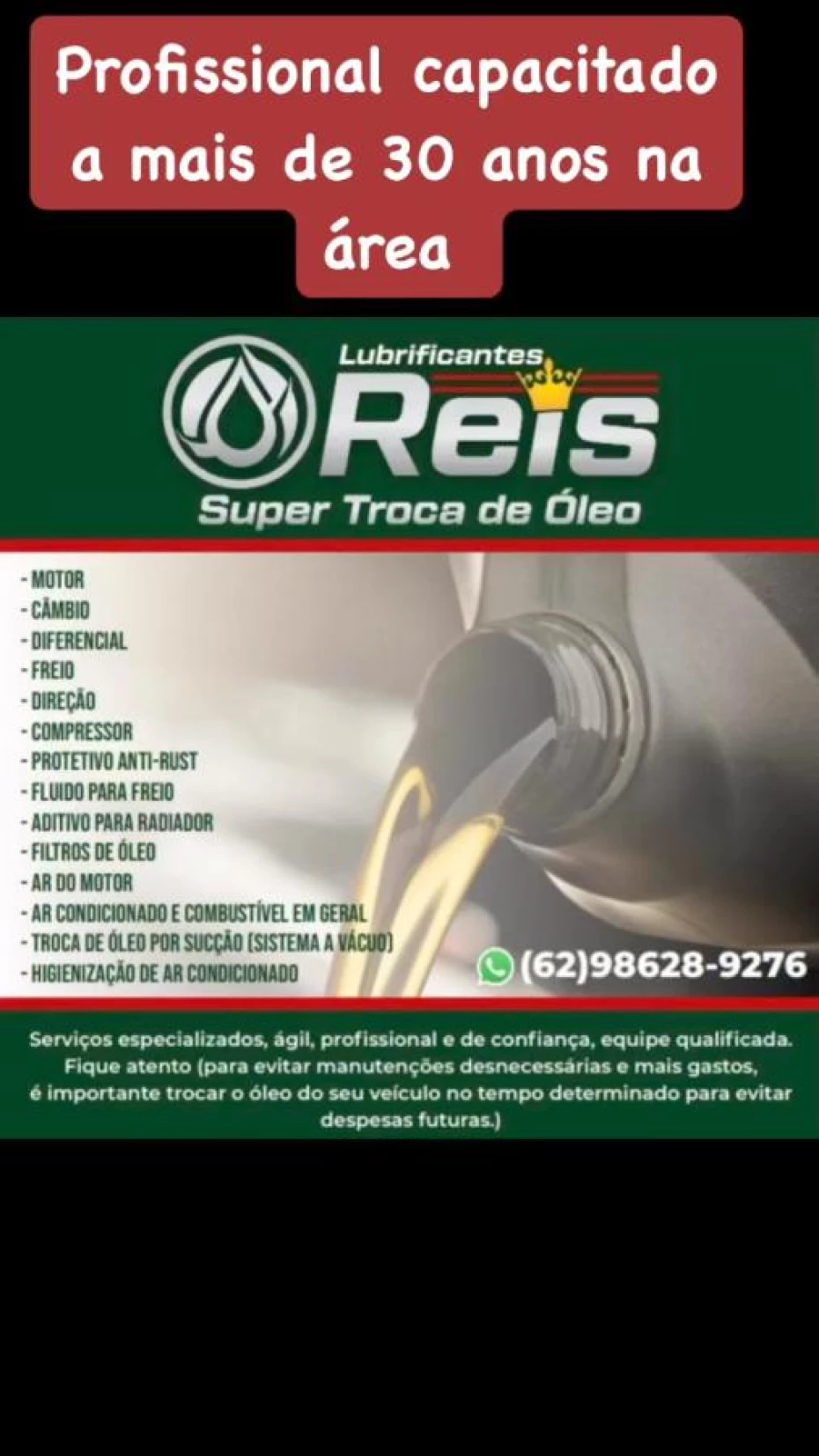 Se você busca qualidade e confiança na manutenção do seu carro, chegou ao lugar certo! Nós, da Lubrificantes Reis, entendemos a importância de um veículo bem cuidado, e estamos aqui para proporcionar os melhores serviços para você.